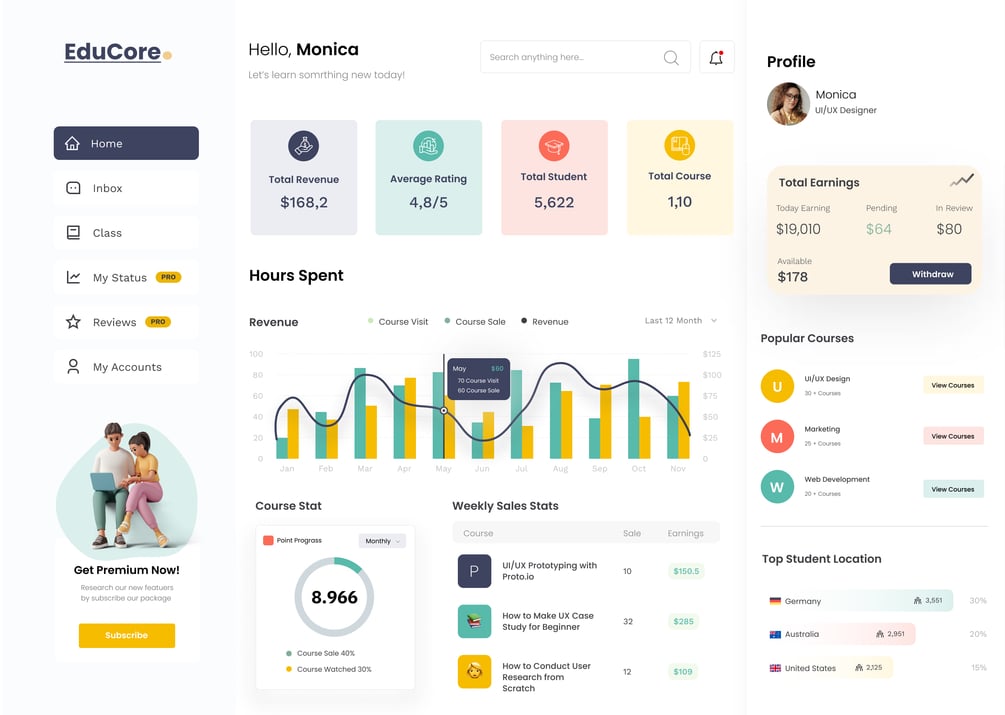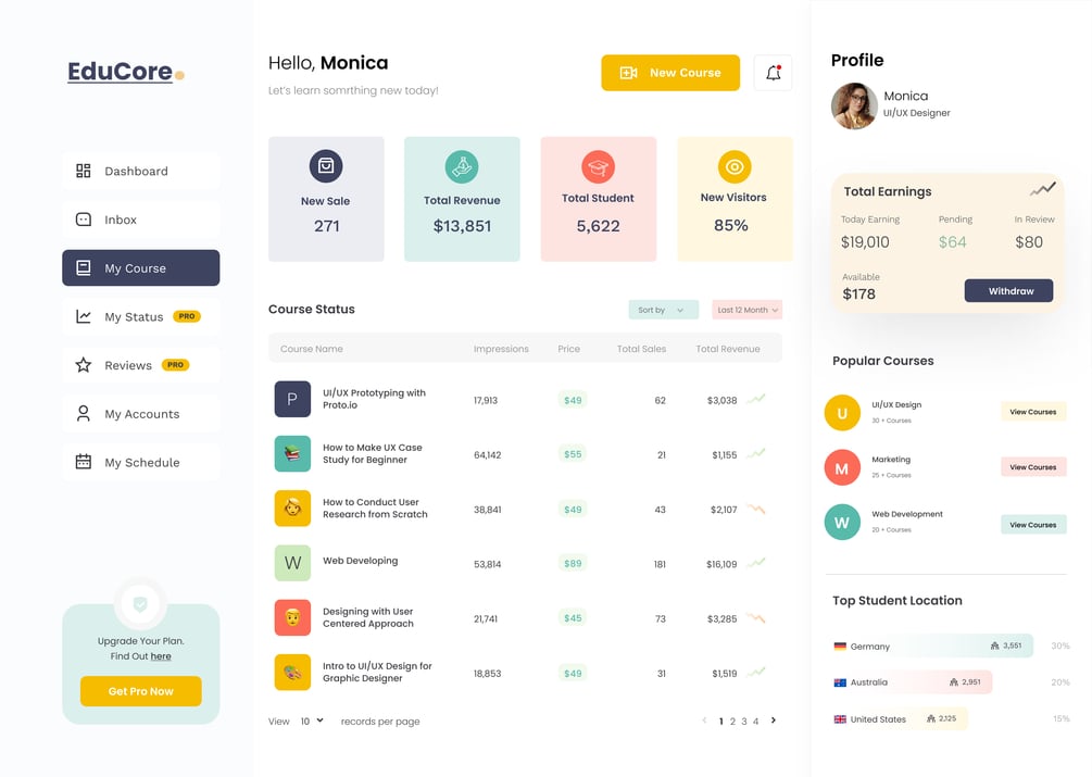 Free E-Learning Dashboard - Figma, Sketch & XD UI Template