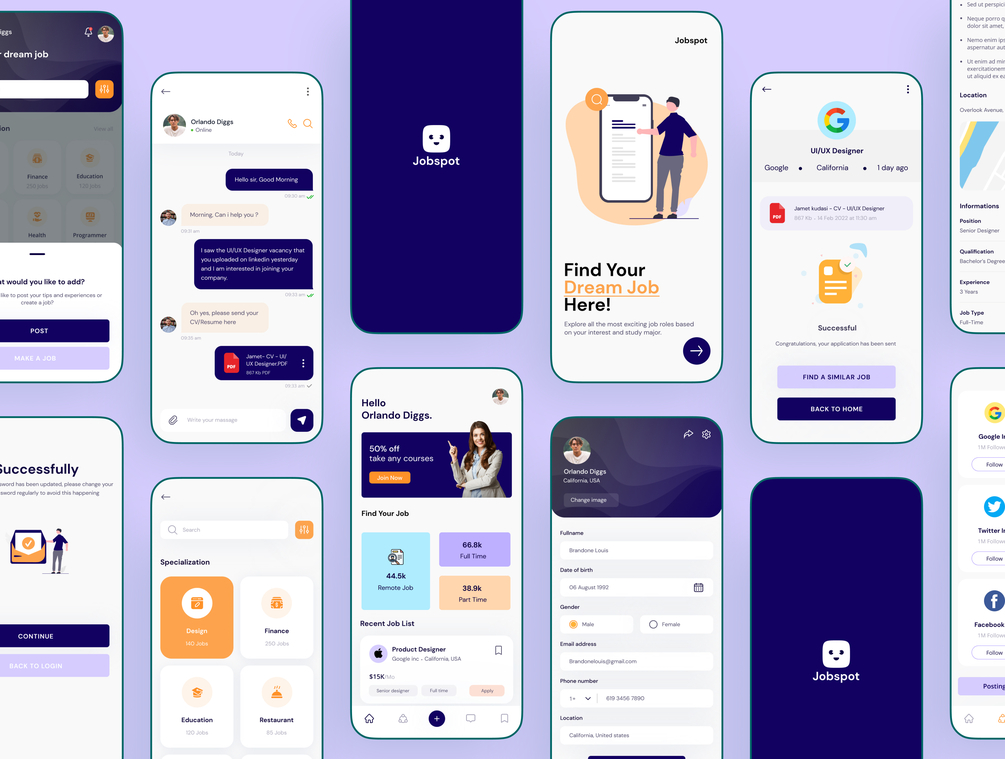 Download this awesome free job finder app ui ux template for your next project.
